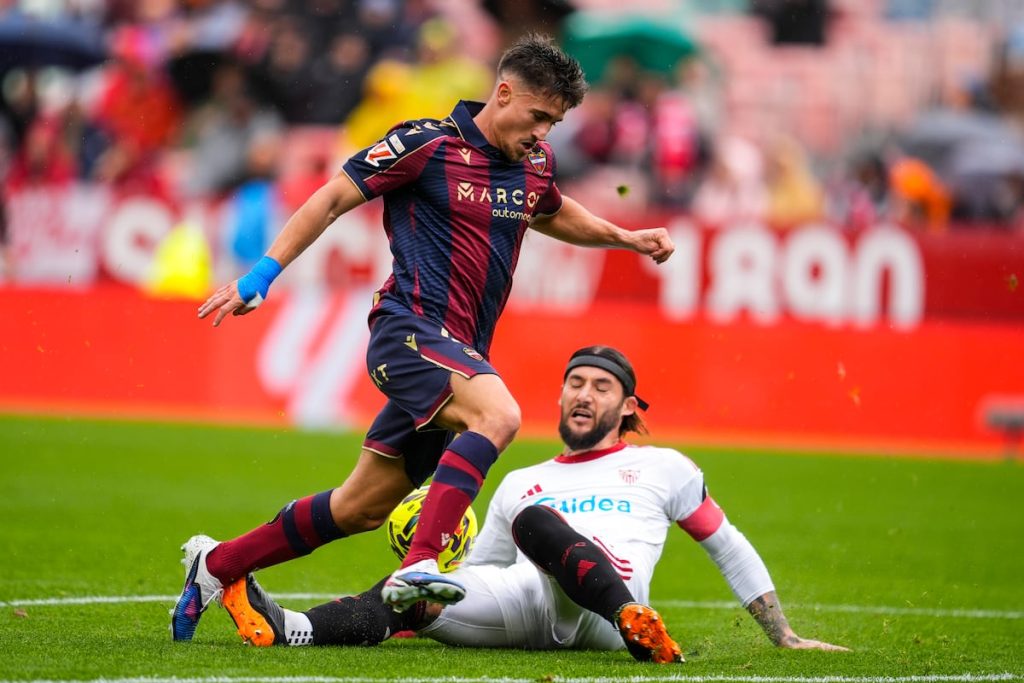 El Levante hizo dos goles más aprovechando las facilidades de un Sevilla al que todo le vino en contra. El primer gol se lo hizo un jugador que pertenece al Betis, Losada. Isaac falló un penalti en el minuto 92 y a la siguiente jugada un exsevillista, Carlos Álvarez, le hizo el tercer tanto. Un guion muy cruel para este Sevilla donde todo gira en torno a cuestiones que están lejos del terreno de juego. La irrupción de Sergio Ramos como posible comprador, la división social que se vive entre el consejo y la afición y un rumbo como entidad que no está nada definido. Respiró el Levante para poner al rojo vivo la zona de abajo (a solo tres puntos ahora de la salvación) y hundir en la mediocridad a este triste Sevilla.Todo resultó muy frío en el desapacible domingo sevillano. Un Pizjuán con menos afluencia de la habitual y un ambiente que propició lo que se vio en el rápido césped hispalense. Quizás por eso el Sevilla mostró una actitud demasiado pasiva frente a un Levante que llegaba como colista de la Liga, estrenando a su técnico, Luis Castro, y una racha sobre su espalda de ocho partidos sin ganar. Y en ese caldo, bajo la lluvia, apareció un Levante valiente, atrevido, que situó su línea de presión en zona muy adelantada y que acogotó a un Sevilla muy poco tenso. Los andaluces apenas apretaron de inicio, aunque tuvieron una buena opción en un remate de Alexis, delantero junto a Peque por el mal estado físico de Isaac. El Sevilla no apareció hasta el minuto 30, cuando decidió apretar a un rival blando. Hubo un gol anulado a Oso, por un justo fuera de juego, pero la presión del Sevilla no duró demasiado. En una gran acción al filo del descanso, Iván Romero combinó a la perfección con Iker Losada. El mediapunta definió desde dentro del área para hacer el 0-1 con un disparo con la pierna izquierda. Mejoró el Sevilla en la segunda mitad. Januzaj le dio otro aire y el equipo tuvo la virtud, al menos, de presionar y meter al Levante en su área. Fue Ryan, el meta australiano, el que sostuvo al Levante en este periodo. Realizó dos paradas estupendas ante Mendy y Gudelj, para ser decisivo posteriormente en el penalti lanzado por Isaac y su posterior rechace. El Sevilla de Almeyda, como suele ser habitual, se lanzó de forma muy atrevida a por el empate y se encontró con el segundo tanto en un contragolpe del Levante bien finalizado por Espí. Luego, no se entiende por qué Isaac le quitó el lanzamiento del penalti al especialista, Alexis. Lo falló el canterano (como hizo ante el Girona el pasado curso) y todavía la herida se hizo más profunda en el Sevilla. Carlos Álvarez hizo el tercer tanto y pidió perdón a una afición que todavía se pregunta cómo este futbolista, de cierta calidad, se marchó al Levante sin ninguna contraprestación. Tercera derrota consecutiva de un Sevilla que se cayó cuando nadie lo esperaba. Este revitalizado Levante dio la campanada en el Sánchez Pizjuán.